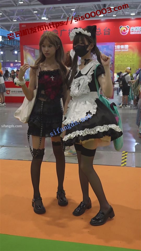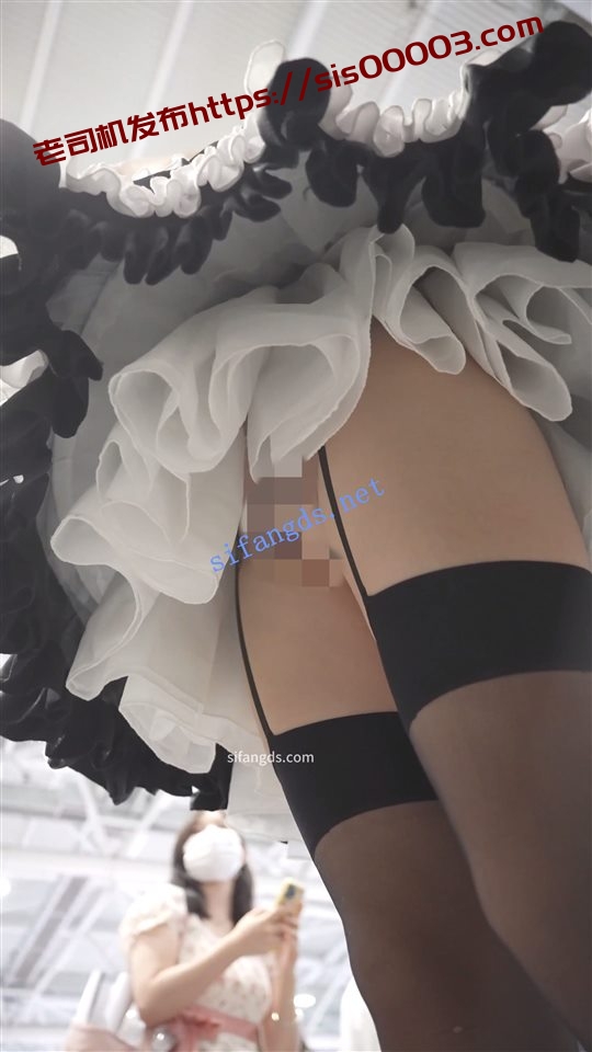 •  双马尾萝莉女仆,性感黑丝吊带袜,粉内正面露黑色