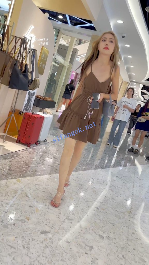 • 大嘴少妇独自逛街买美妆·背影很顶·吊带裙淡绿色内内
